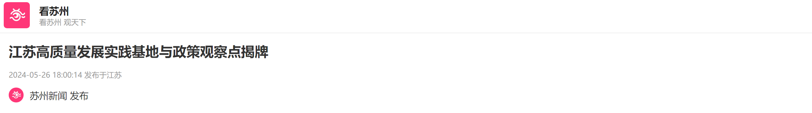 | 【蘇州新聞】江蘇高質量發展實踐基地與政策觀察點揭牌 |