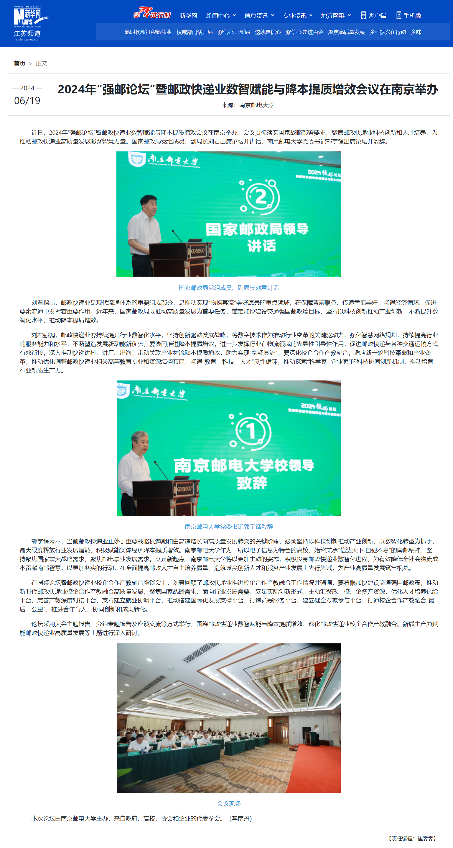 | 【新華網(wǎng)】2024年“強(qiáng)郵論壇”暨郵政快遞業(yè)數(shù)智賦能與降本提質(zhì)增效會議在南京舉辦 |