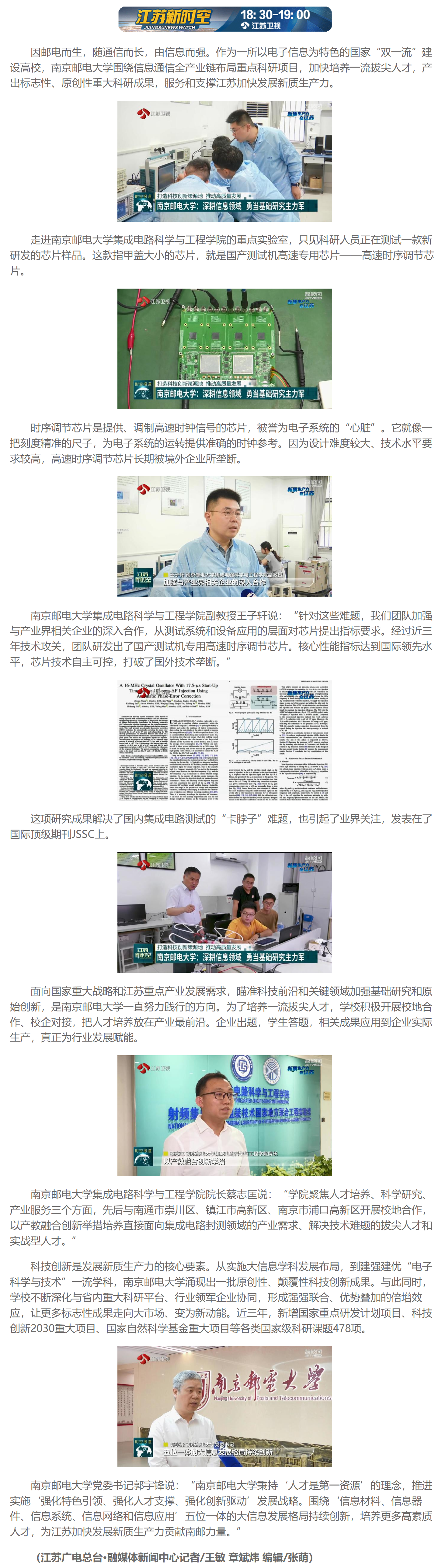 | 【江蘇衛視】南京郵電大學:深耕信息領域 勇當基礎研究主力軍 |