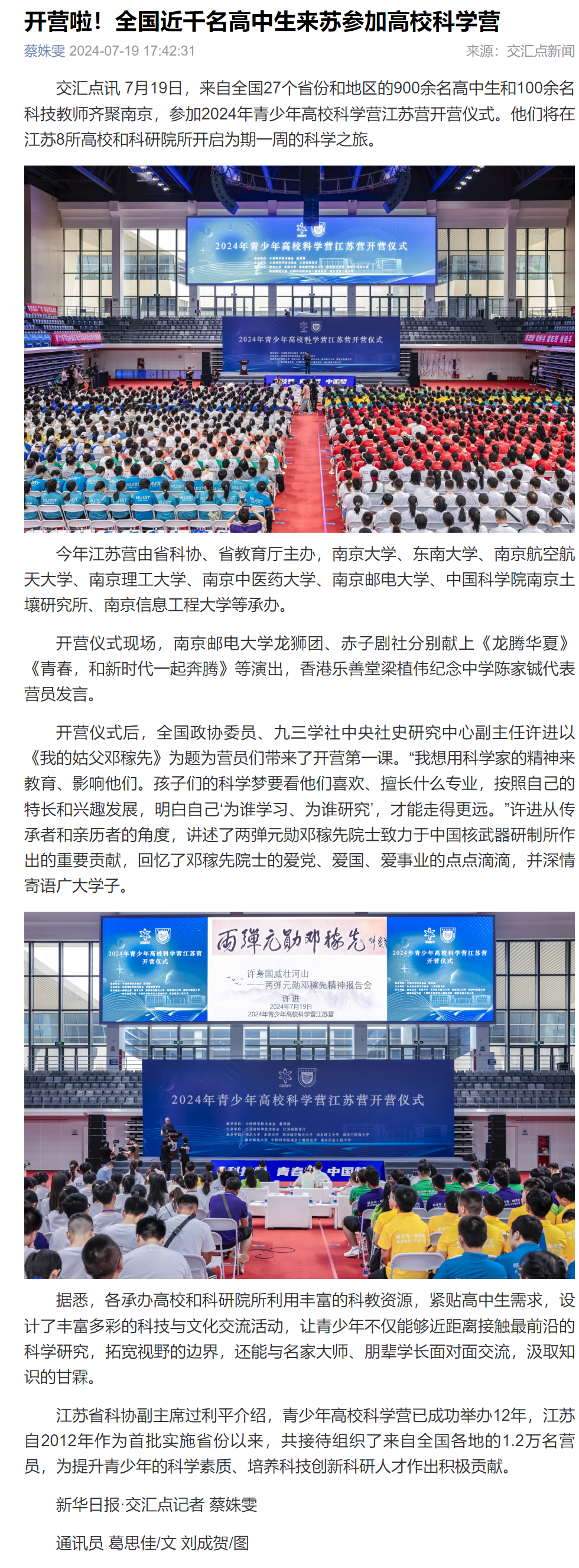 | 【新華日報客戶端】開營啦!全國近千名高中生來蘇參加高校科學營 |