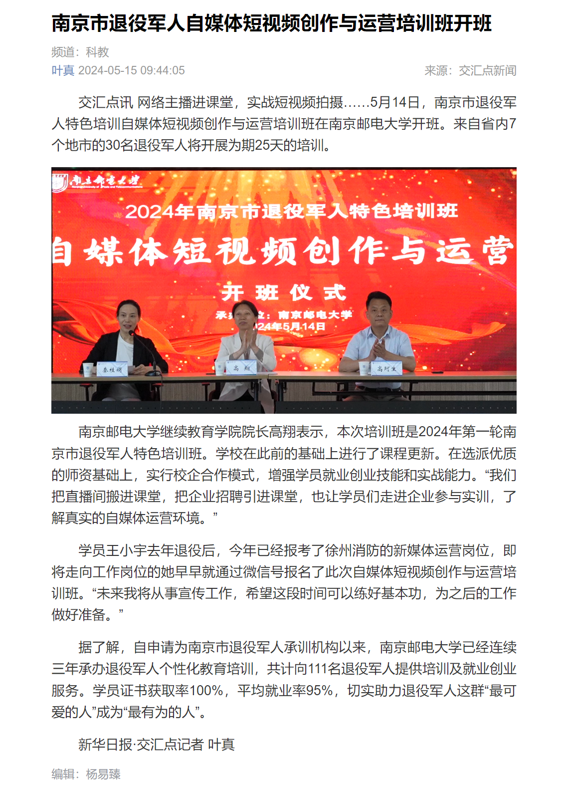 | 【新華日報客戶端】南京市退役軍人自媒體短視頻創作與運營培訓班開班 |