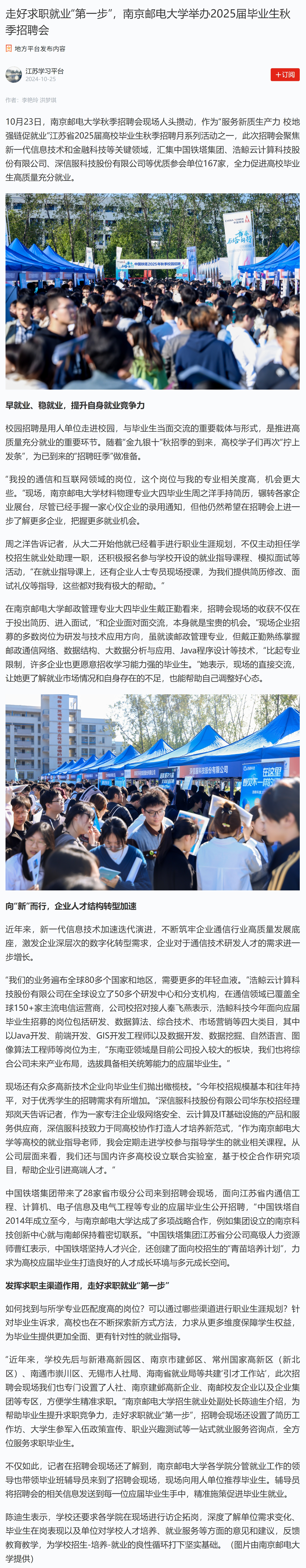 | 【學習強國】走好求職就業“第一步”,南京郵電大學舉辦2025屆畢業生秋季招聘會 |