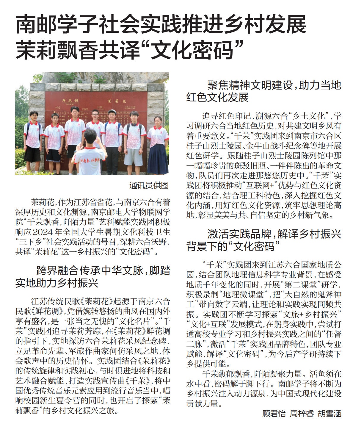 | 【南京晨報】南郵學子社會實踐推進鄉村發展 茉莉飄香共譯“文化密碼” |