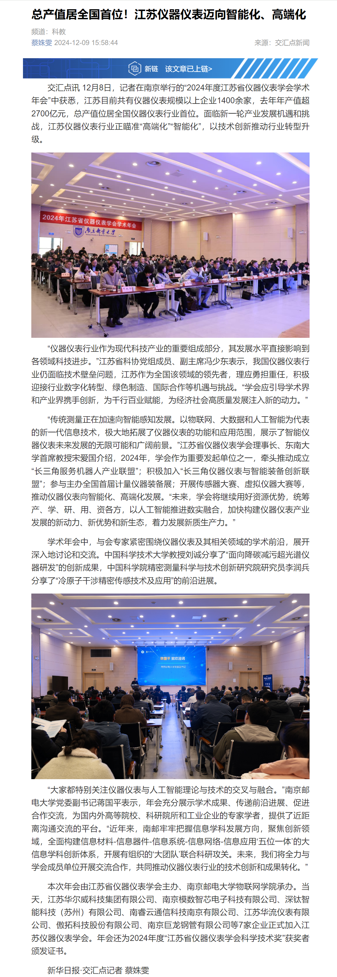 | 【新華日報客戶端】總產值居全國首位!江蘇儀器儀表邁向智能化、高端化 |