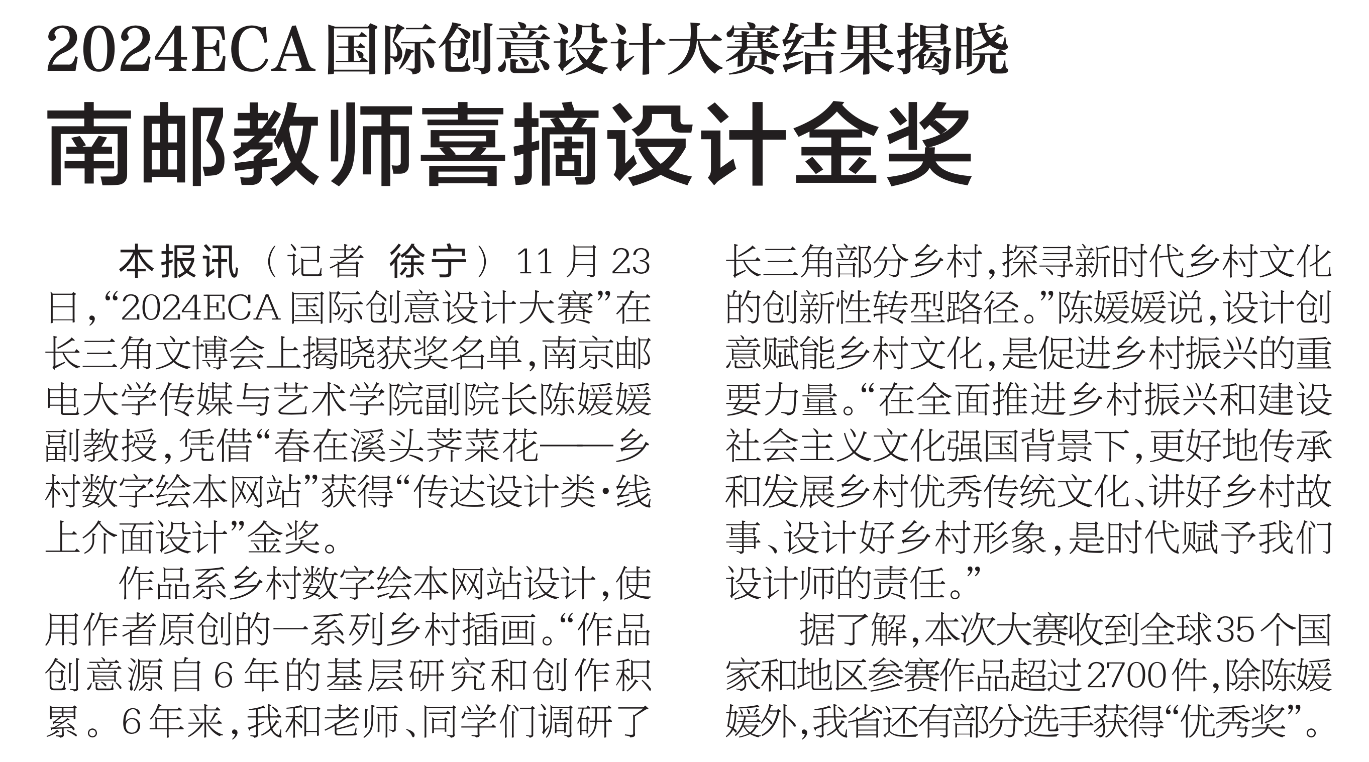 【新華日報】2024ECA國際創意設計大賽結果揭曉 南郵教師喜摘設計金獎