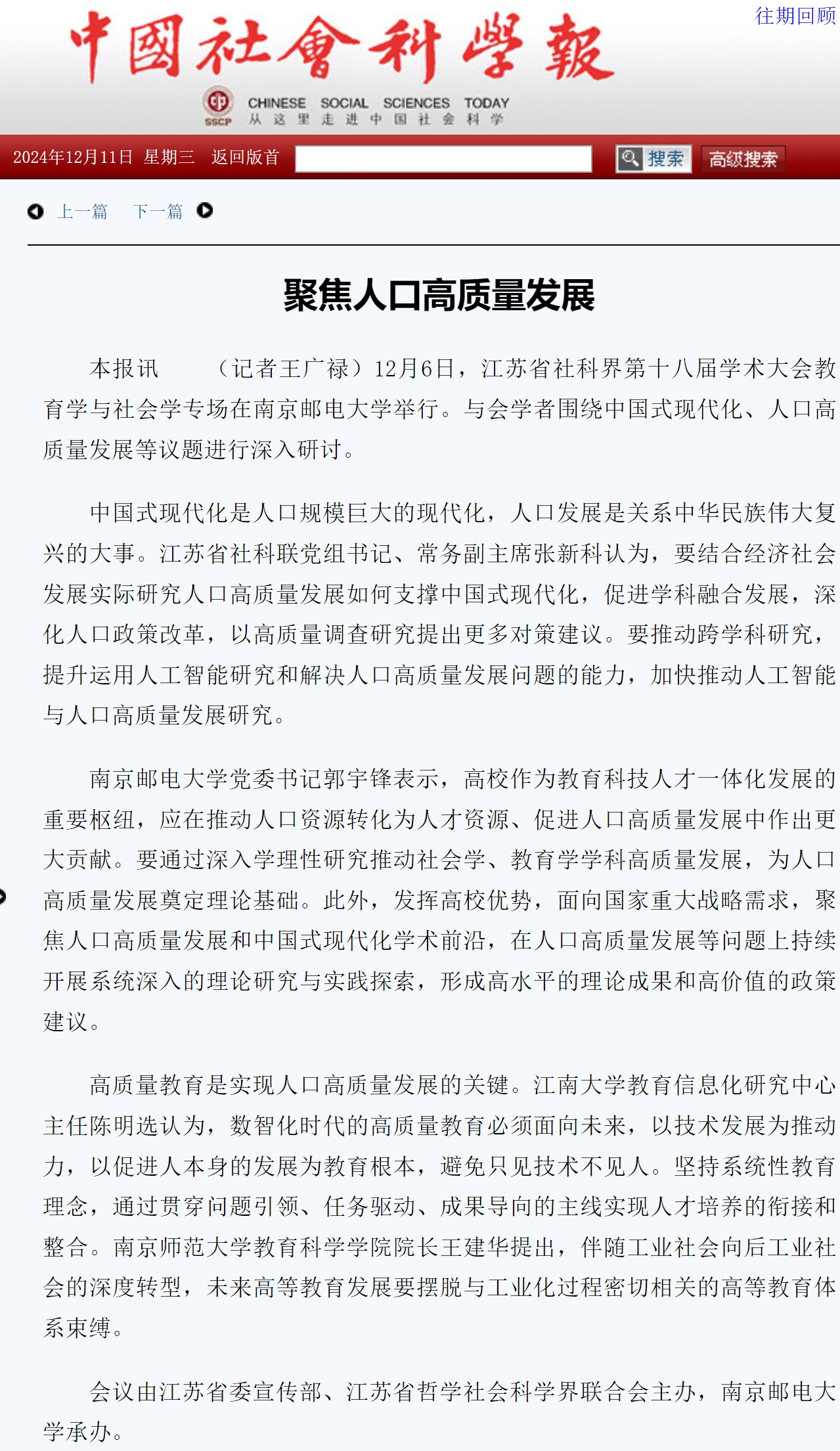 | 【中國社會科學(xué)報】江蘇省社科界第十八屆學(xué)術(shù)大會教育學(xué)與社會學(xué)專場聚焦人口高質(zhì)量發(fā)展 |