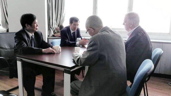 President Yang, Professor Zheng Baoyu in a cordial conversation with Dr. Mitola and Prof. Zhang Honggang