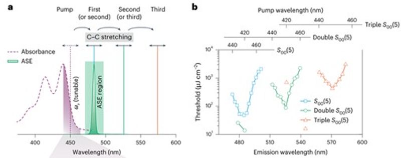 This groundbreaking discovery overturns the traditional nonlinear optics paradigm of “high energy for high gain” and has been highly praised by international peer reviewers, who noted that the study opens a new perspective to perfectly address the worldwide challenge of insufficient Raman gain and is expected to reshape the direction of Raman lasing research, with broad applicability across different material systems. The findings expand the application scenarios of organic semiconductors, pioneering a new direction for organic semiconductor Raman lasers and reinforcing China's leading position in flexible electronics and photonics. This technology holds promise for applications in visible-light communications, portable real-time explosives detection, and wearable non-invasive health monitoring.